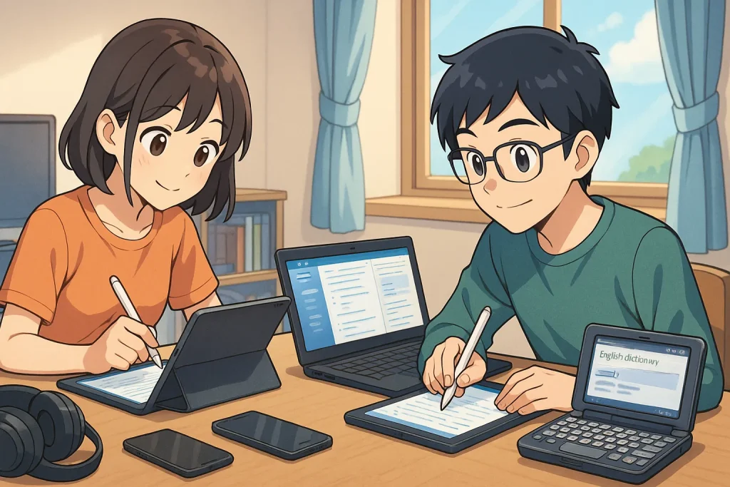 電子辞書は高速検索、アプリは隙間時間の学習に最適。