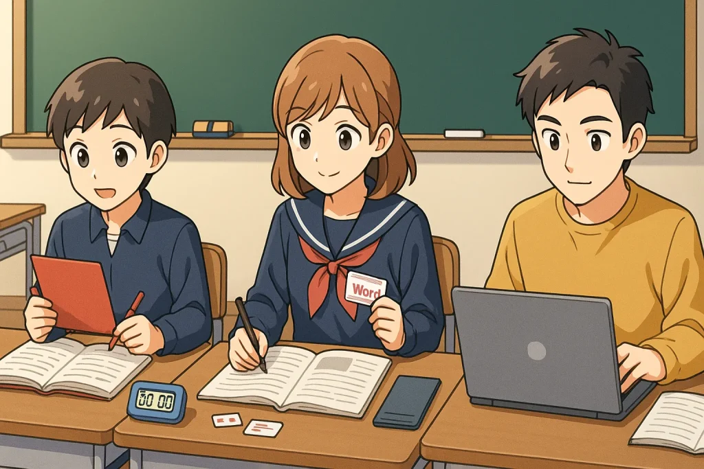 友達とクイズ形式で楽しく反復すると定着が加速します。